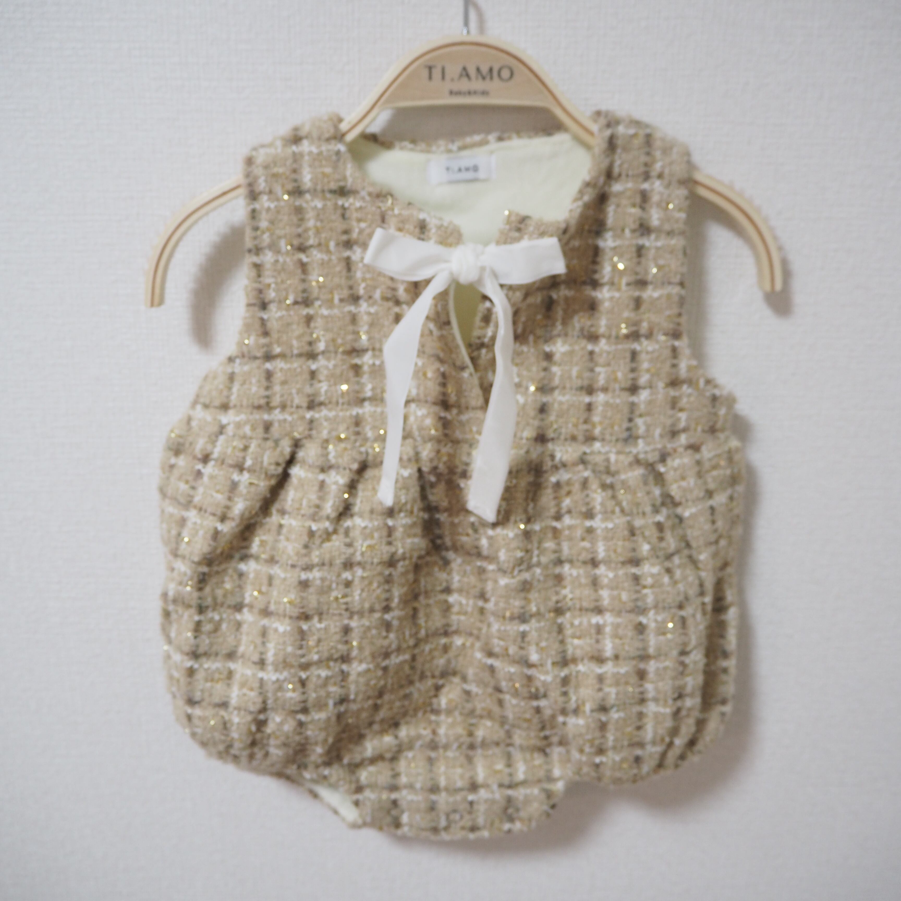 【66・73】韓国ベビー服 チェック柄ロンパース